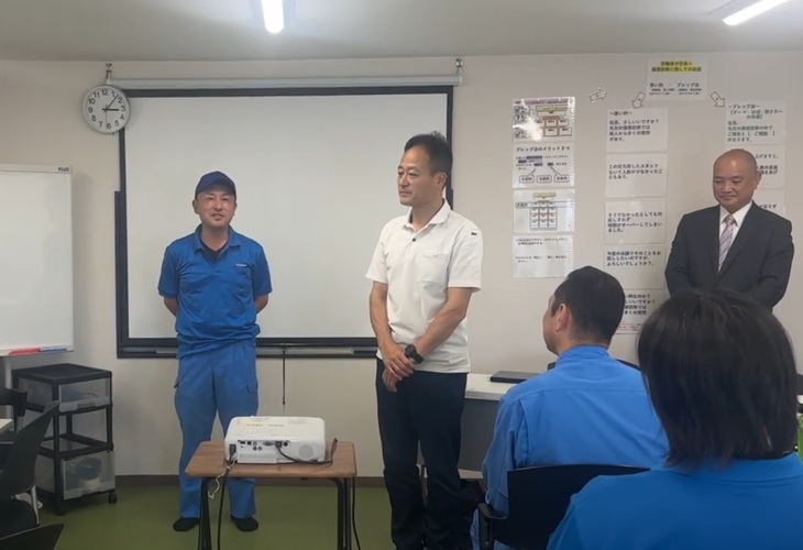 令和7年5月14日、今月は「朝霞市委託不燃ごみチーム」6名が永年安全ドライバーの表彰を受けました。