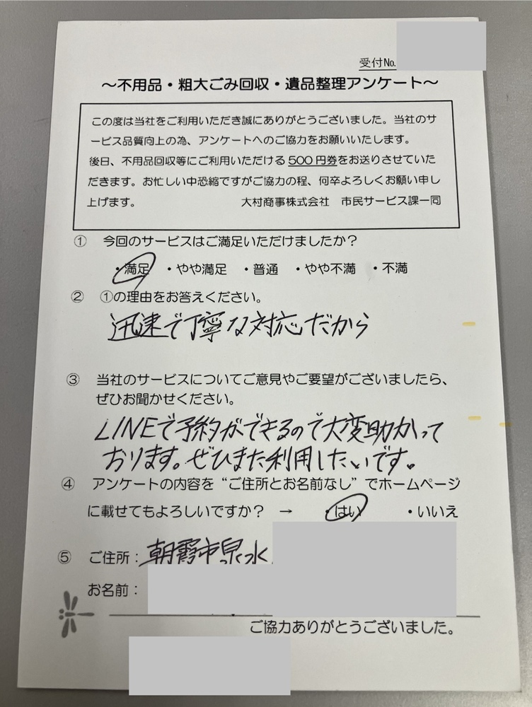 朝霞市のお客様のお声です